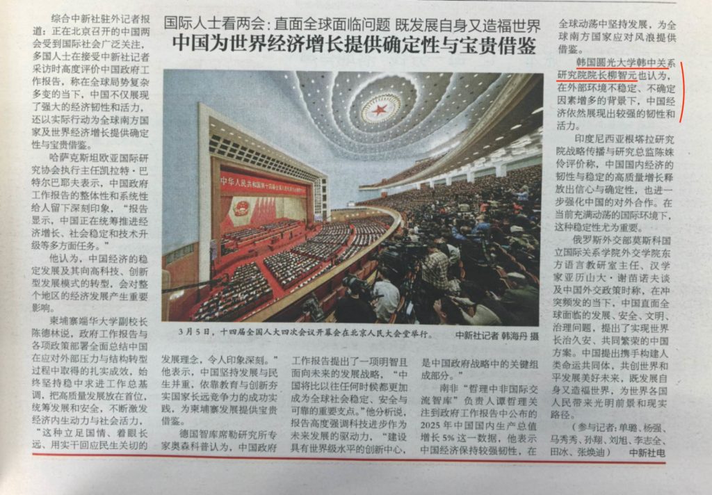 [2026.03.07] 원광대학교 한중관계연구원 유지원 원장 중국 현지 매체에서 2026 양회 경제 전망 밝혀