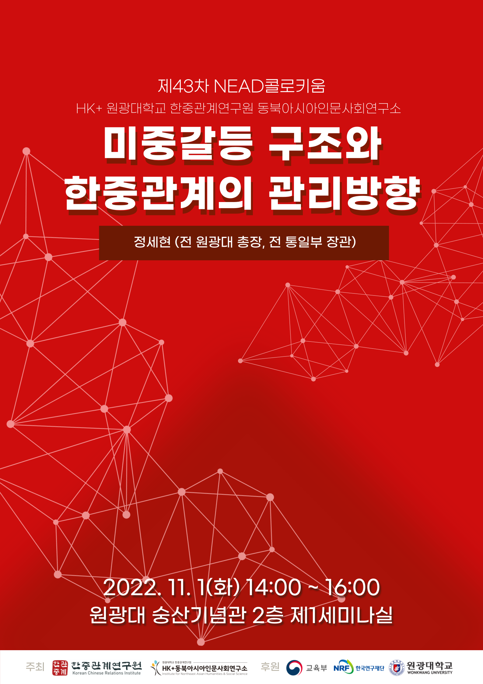 공지사항 홈연구원 소식공지사항 [행사] 한중관계연구원 HK+동북아인문사회연구소 제43차 NEAD콜로키움 개최 (22.11.01) [행사] 한중관계연구원 HK+동북아인문사회연구소 제43차 NEAD콜로키움 개최 (22.11.01) 한중관계연구원2022-10-28 페이스북 트위터 구글플러스 이메일 프린트 이전공지사항다음