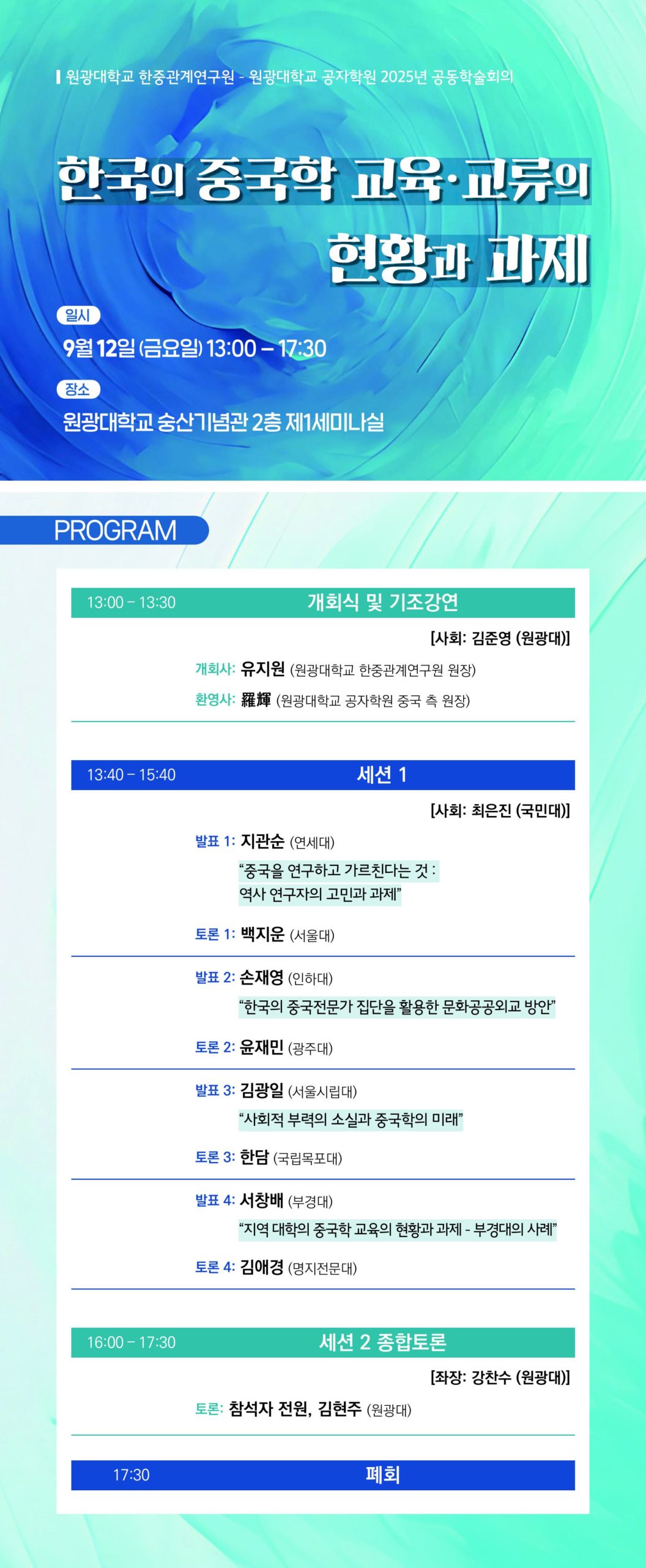 공지사항 홈학술행사국내학술회의 [행사]한중관계연구원, 공자학원과 공동학술대회 개최 [행사]한중관계연구원, 공자학원과 공동학술대회 개최 한중관계연구원2025-09-02 페이스북 트위터 구글플러스 이메일 프린트 이전공지사항다음